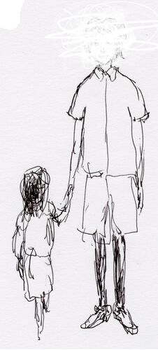 そこで僕は自然に現れた母親と話し、 犬をひなたぼっこさせる。 彼は少し 唸っていた。